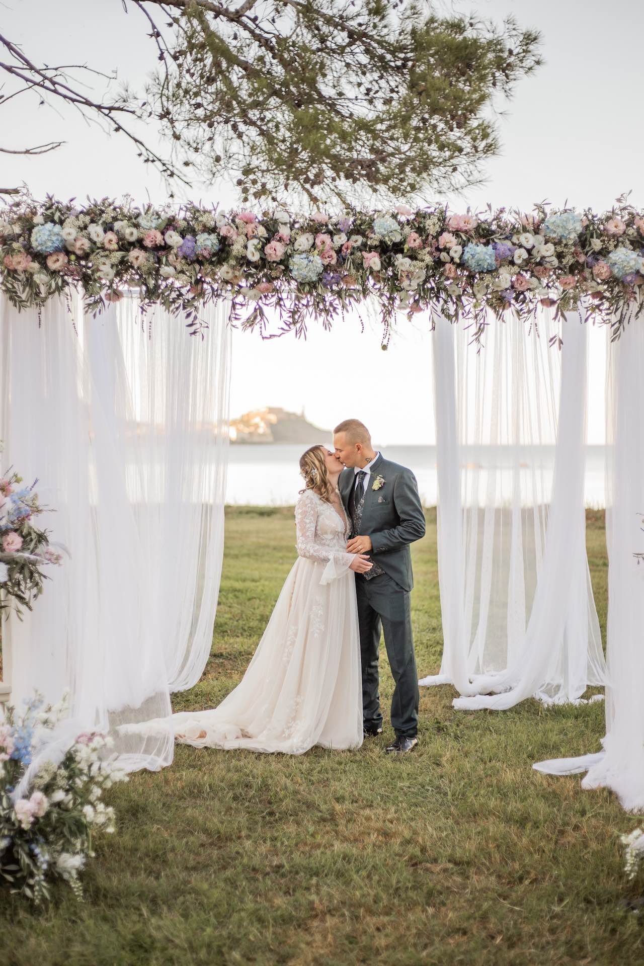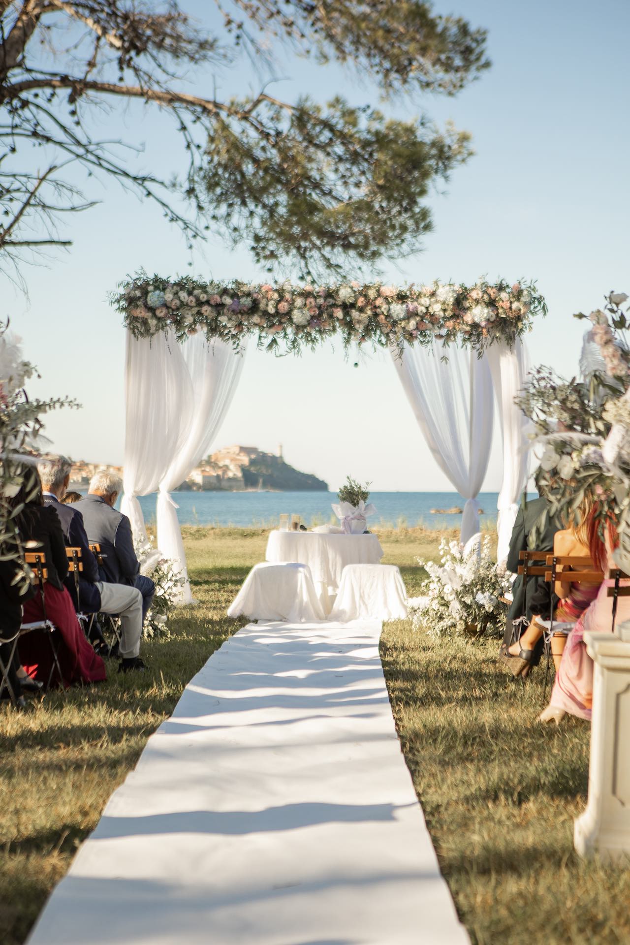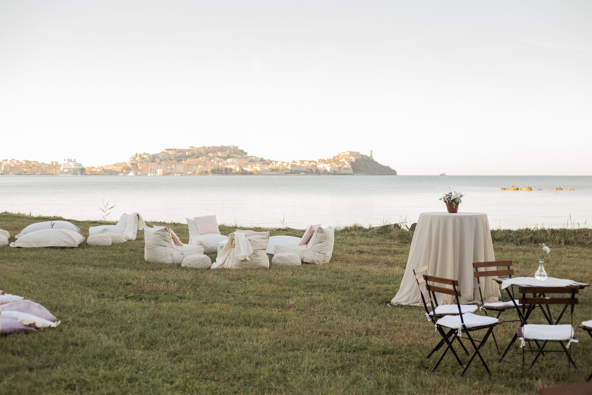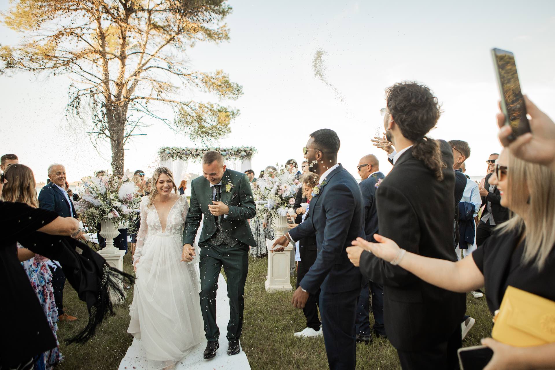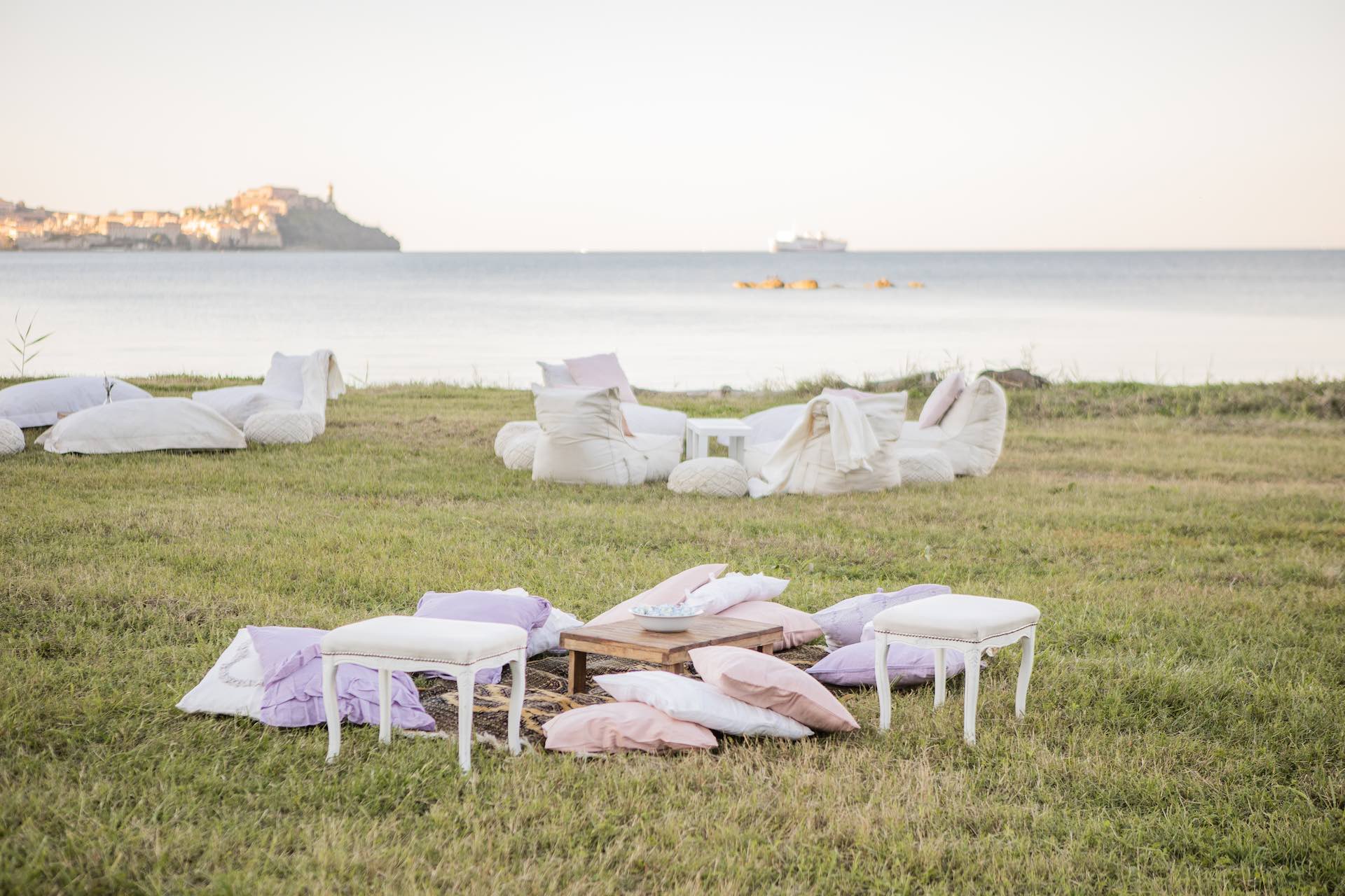 L’Elba, la più grande delle sette isole della Toscana, è il “Luogo del Cuore” per molte coppie che decidono di convolare a nozze perché i suoi paesaggi sono unici e capaci di regalare profumi e colori diversi in ogni stagione dell’anno. Milena e Vlad, una giovane coppia dell’Isola d’Elba, ha scelto di celebrare il matrimonio in un terreno conosciuto come Podere I Sassi che si affaccia sul Golfo di Portoferraio, e il Ristoro Montefabbrello, un agriturismo che profuma di terra, olivo e vigna. Dimitri, il proprietario nonché gestore, si è occupato magistralmente del catering: l’aperitivo a base di prelibatezze cucinate con prodotti a Km 0 è stato organizzato nel Podere I Sassi al termine della cerimonia civile, mentre la cena di nozze si è tenuta al Ristoro tra luci, candele e fiori di campo. Gli sposi, sotto la mia guida di wedding planner, hanno scelto un allestimento romantico con fiori semplici la cui palette ha spaziato dai toni del celeste cenere e rosa tenue a quelli del viola chiaro, il tutto impreziosito da piume bianche. Il periodo scelto per l’organizzazione del loro matrimonio una domenica d’autunno baciata dal sole che ha celebrato e benedetto l’amore di Vlad, Milena e del piccolo Ivan. Un’esperienza unica per gli sposi e per i loro invitati che ricorderanno sempre come un matrimonio da sogno.