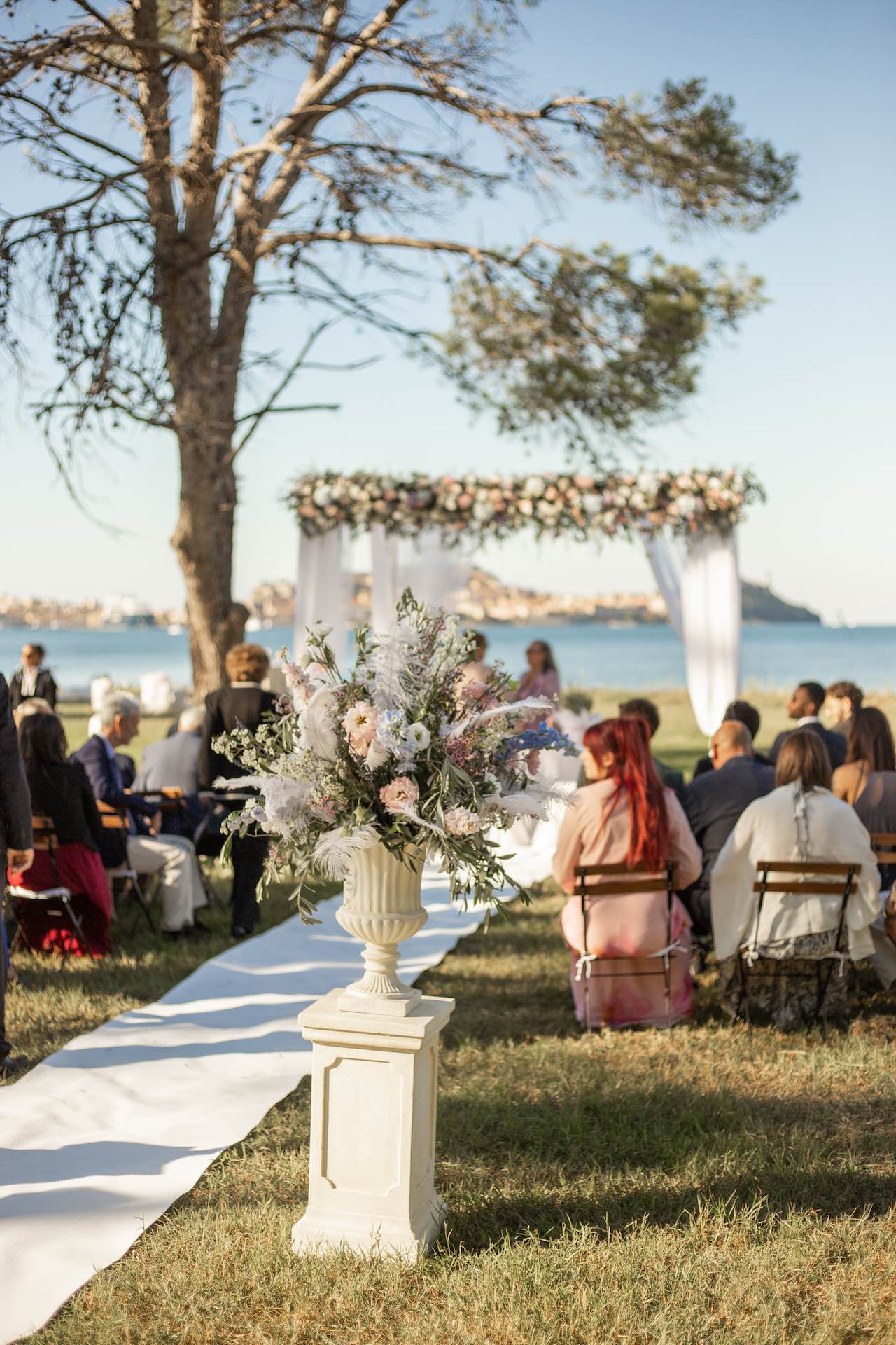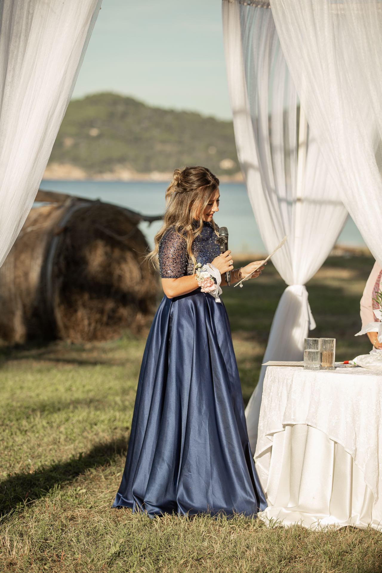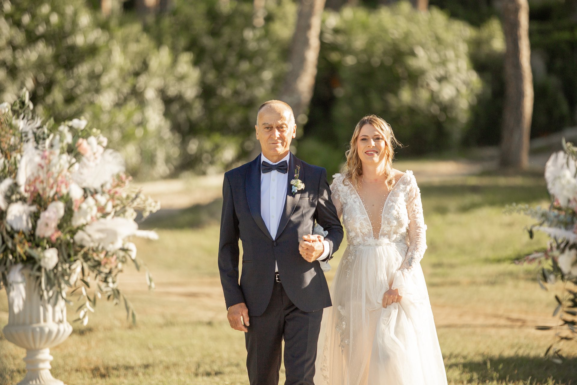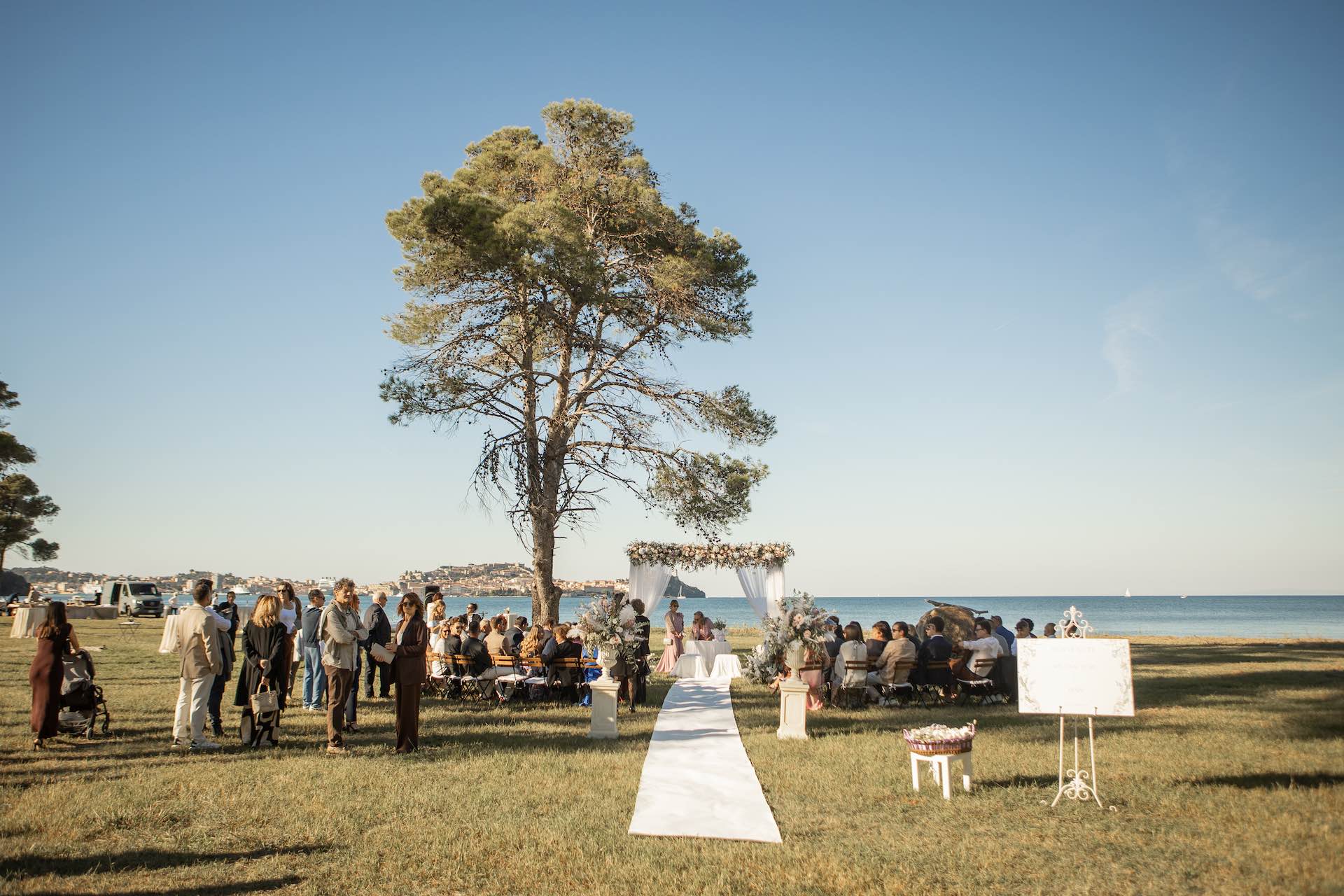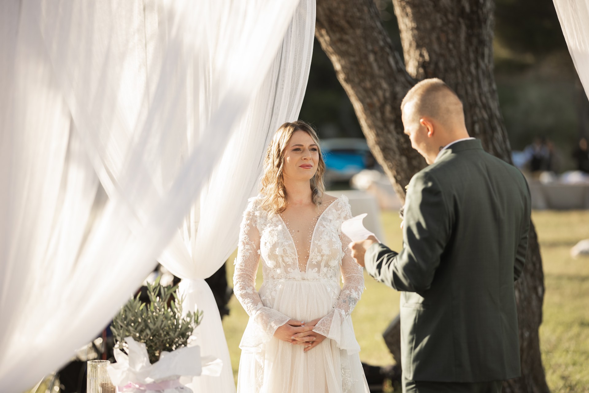 L’Elba, la più grande delle sette isole della Toscana, è il “Luogo del Cuore” per molte coppie che decidono di convolare a nozze perché i suoi paesaggi sono unici e capaci di regalare profumi e colori diversi in ogni stagione dell’anno. Milena e Vlad, una giovane coppia dell’Isola d’Elba, ha scelto di celebrare il matrimonio in un terreno conosciuto come Podere I Sassi che si affaccia sul Golfo di Portoferraio, e il Ristoro Montefabbrello, un agriturismo che profuma di terra, olivo e vigna. Dimitri, il proprietario nonché gestore, si è occupato magistralmente del catering: l’aperitivo a base di prelibatezze cucinate con prodotti a Km 0 è stato organizzato nel Podere I Sassi al termine della cerimonia civile, mentre la cena di nozze si è tenuta al Ristoro tra luci, candele e fiori di campo. Gli sposi, sotto la mia guida di wedding planner, hanno scelto un allestimento romantico con fiori semplici la cui palette ha spaziato dai toni del celeste cenere e rosa tenue a quelli del viola chiaro, il tutto impreziosito da piume bianche. Il periodo scelto per l’organizzazione del loro matrimonio una domenica d’autunno baciata dal sole che ha celebrato e benedetto l’amore di Vlad, Milena e del piccolo Ivan. Un’esperienza unica per gli sposi e per i loro invitati che ricorderanno sempre come un matrimonio da sogno.
